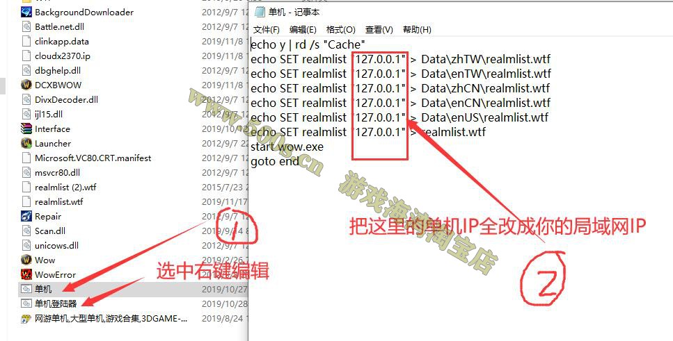 第一种:在客户端找到单机.bat,或者万能登陆器.bat,右键编辑,替换成局域网IP,双击打开进入游戏就可以了!!