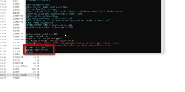 如何注册账号:在第三个弹出的服务器窗口(三个窗口只有一个可以输入,就在这里输入), 输入以下语法:.account create 帐号 密码