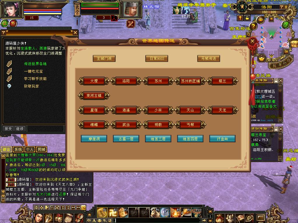 2个小时整点各大野外刷新几十个机器人PK,注意左下角系统消息!