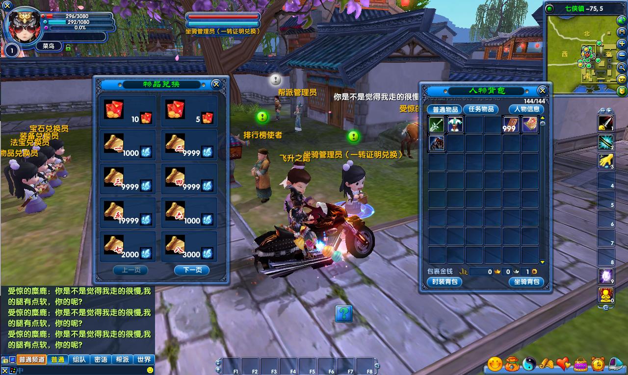 (4)用系统送的随意门传送60级以上区域,越级打怪,升级到40多级以后(4分钟就能升到40,此时包里有2金,可以打技能石头),找7X娄知县转职,转职后用技能打怪,不会出现闪避。